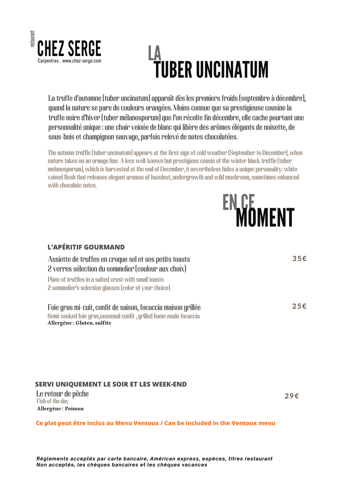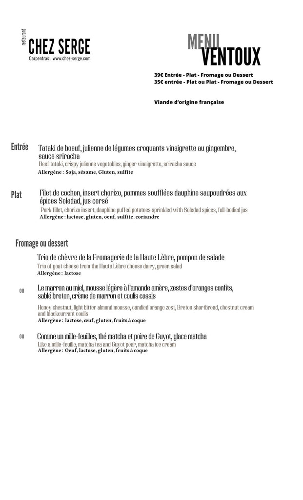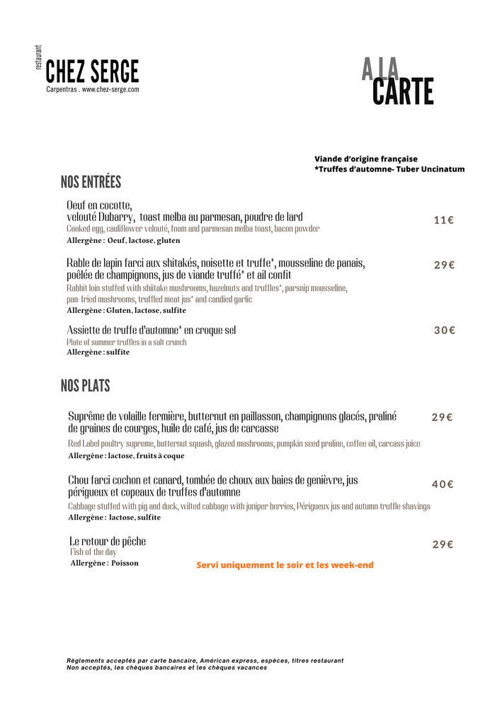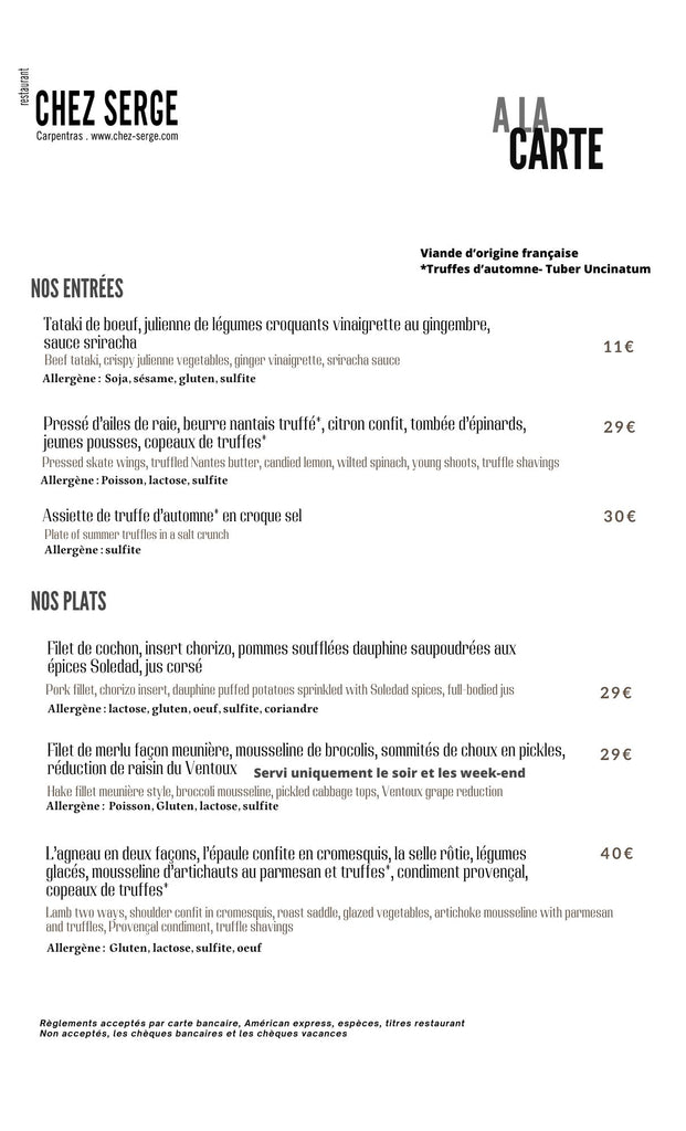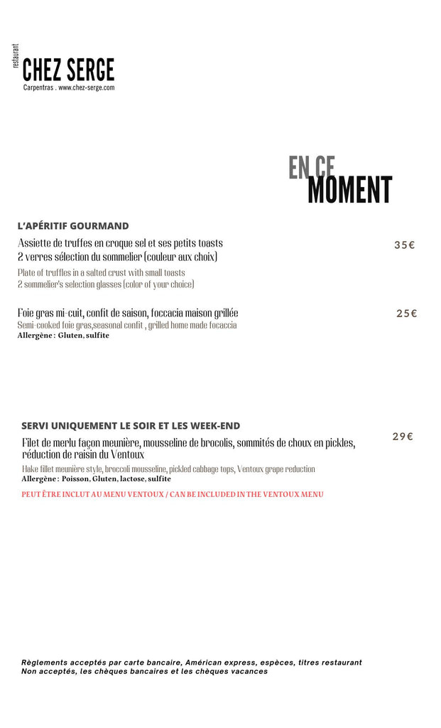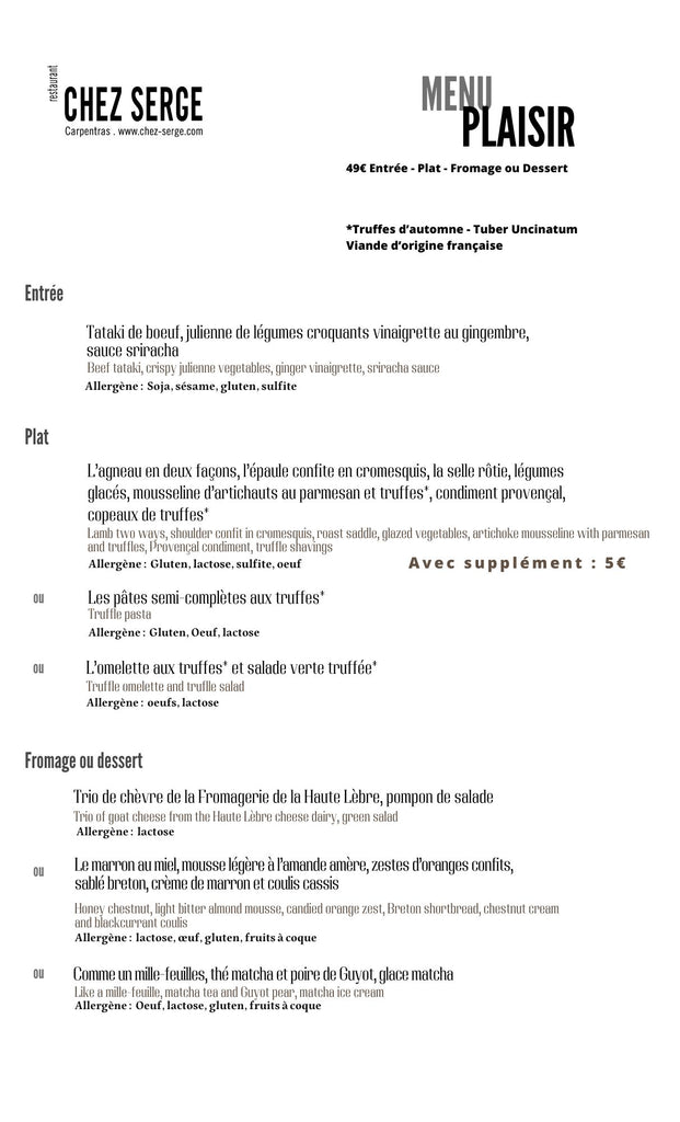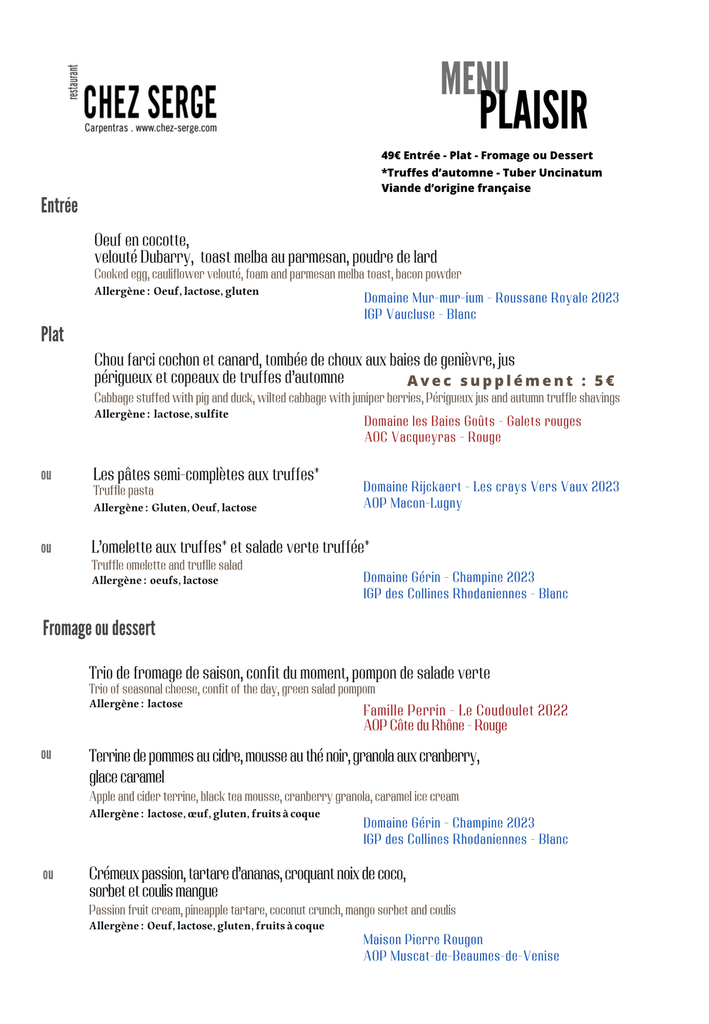 ‘‘ Chez Serge ’’, c’est aussi une façon de vous accueillir et de vous faire passer le plus agréable des moments. Serge a su communiquer à toute son équipe cette convivialité et cette chaleur humaine qui le caractérise.
